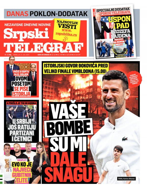 Naslovna strana Srpskog telegrafa za 14.07.2024.