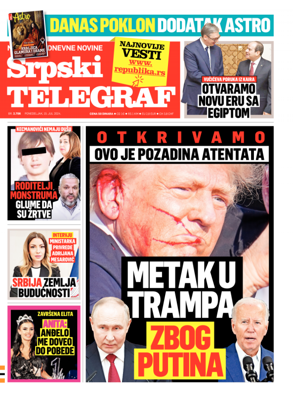 Naslovna strana Srpskog telegrafa za 15.07.2024.