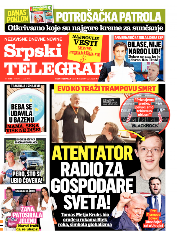 Naslovna strana Srpskog telegrafa za 17.07.2024.