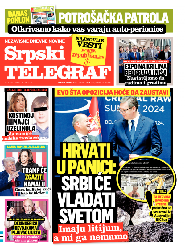 Naslovna strana Srpskog telegrafa za 24.07.2024.