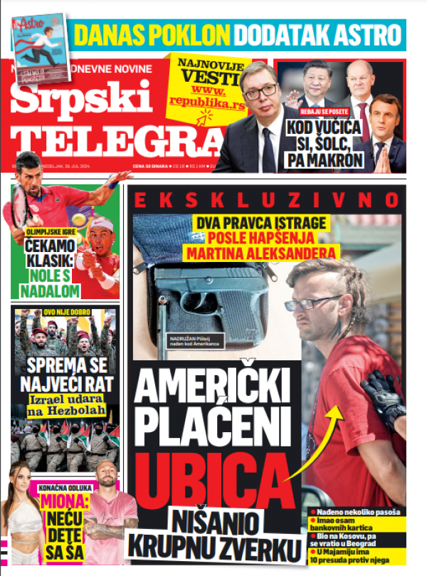 Naslovna strana Srpskog telegrafa za 29.07.2024.
