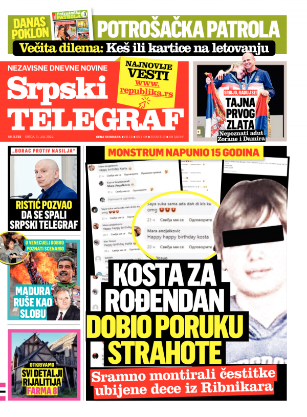 Naslovna strana Srpskog telegrafa za 31.07.2024.