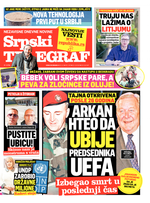 Naslovna strana Srpskog telegrafa za 02.08.2024.