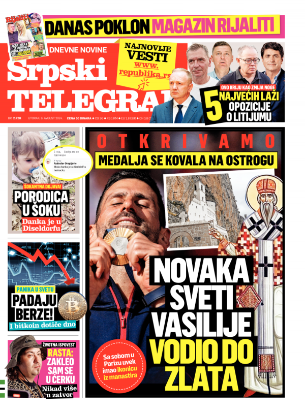 Naslovna strana Srpskog telegrafa za 06.08.2024.