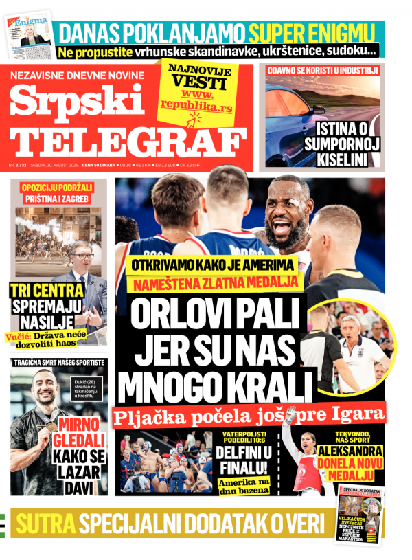 Naslovna strana Srpskog telegrafa za 10.08.2024.