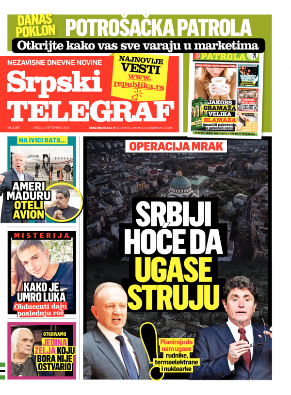 Naslovna strana Srpskog telegrafa za 04.09.2024.