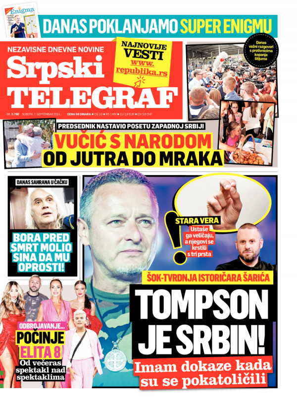 Naslovna strana Srpskog telegrafa za 07.09.2024.