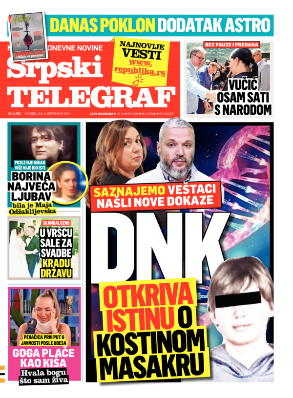 Naslovna strana Srpskog telegrafa za 09.09.2024.