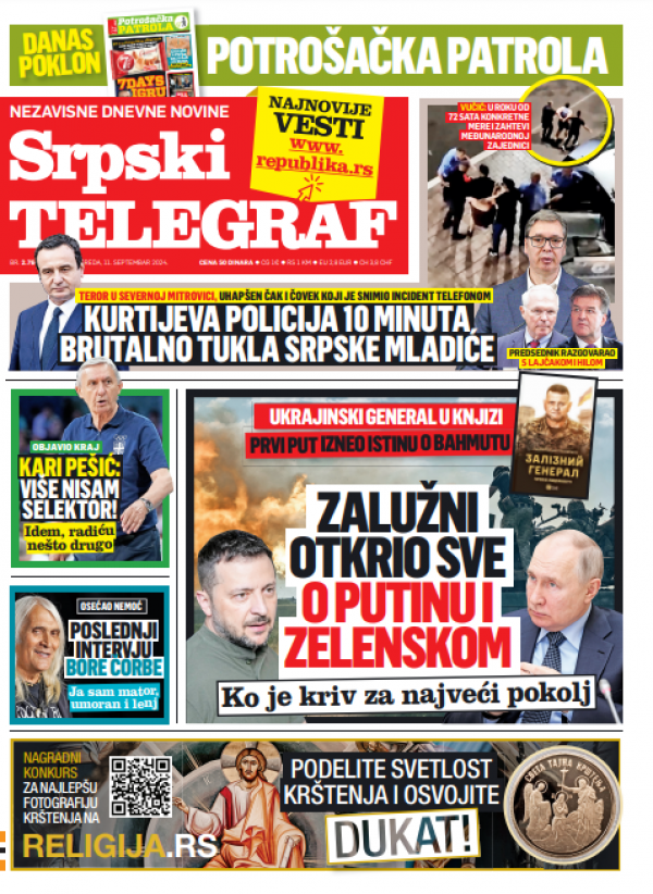 Naslovna strana Srpskog telegrafa za 11.09.2024.