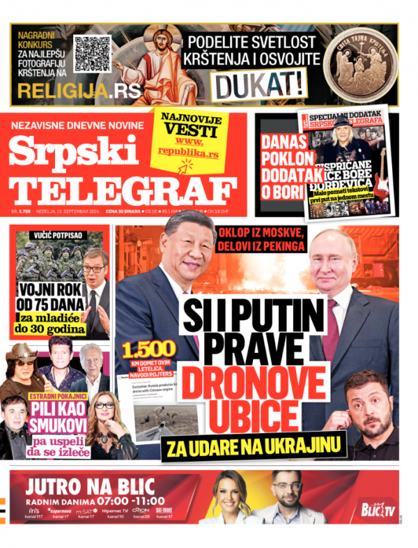 Naslovna strana Srpskog telegrafa za 15.09.2024.
