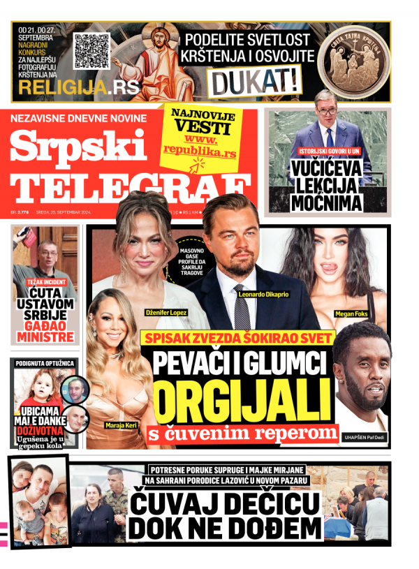 Naslovna strana Srpskog telegrafa za 25.09.2024.