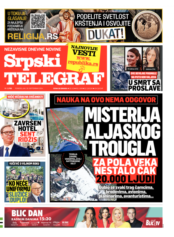 Naslovna strana Srpskog telegrafa za 30.09.2024.