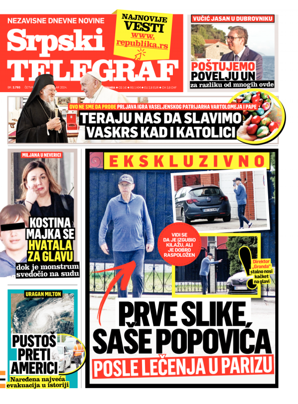 Naslovna strana Srpskog telegrafa za 10.10.2024.