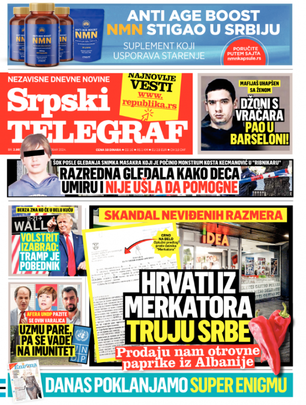 Naslovna strana Srpskog telegrafa za 19.10.2024.