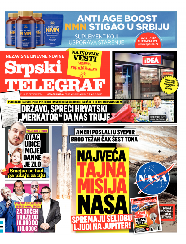 Naslovna strana Srpskog telegrafa za 20.10.2024.
