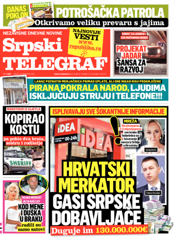 Naslovna strana Srpskog telegrafa za 23.10.2024.