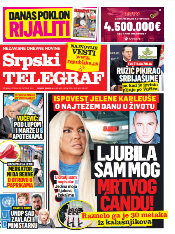 Naslovna strana Srpskog telegrafa za 29.10.2024.