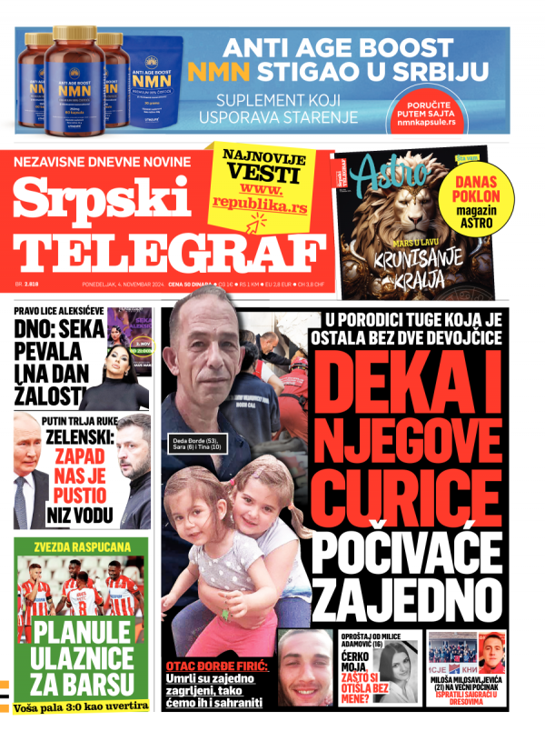 Naslovna strana Srpskog telegrafa za 04.11.2024.
