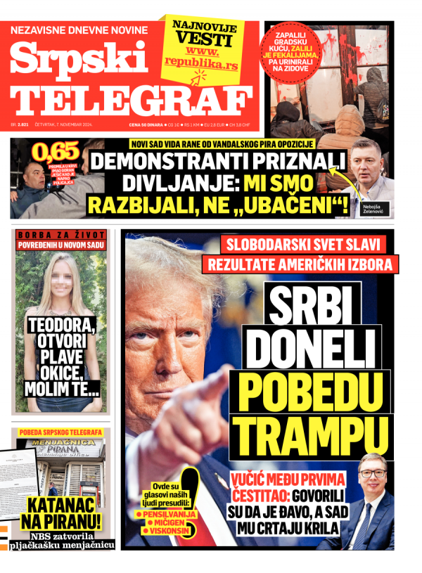 Naslovna strana Srpskog telegrafa za 07.11.2024.