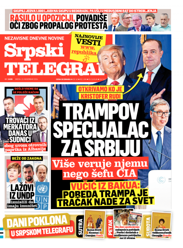 Naslovna strana Srpskog telegrafa za 13.11.2024.