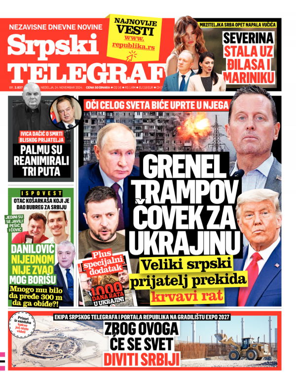 Naslovna strana Srpskog telegrafa za 24.11.2024.