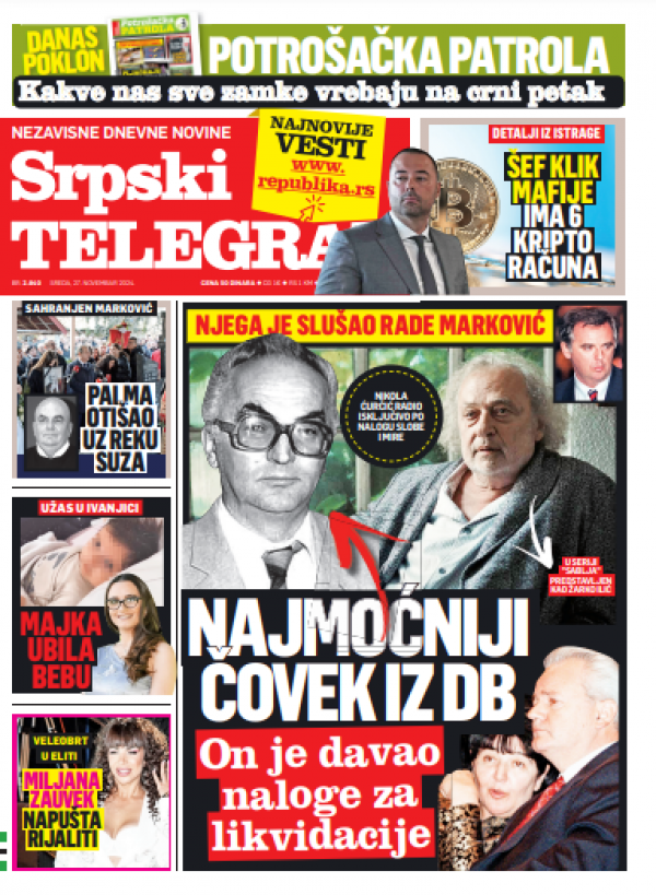 Naslovna strana Srpskog telegrafa za 27.11.2024.