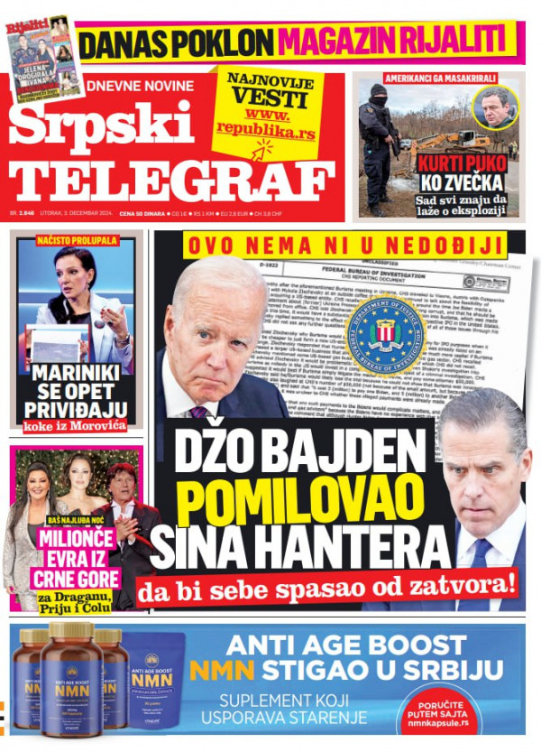 Naslovna strana Srpskog telegrafa za 03.12.2024.