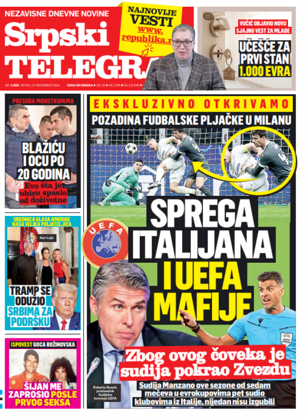 Naslovna strana Srpskog telegrafa za 13.12.2024.