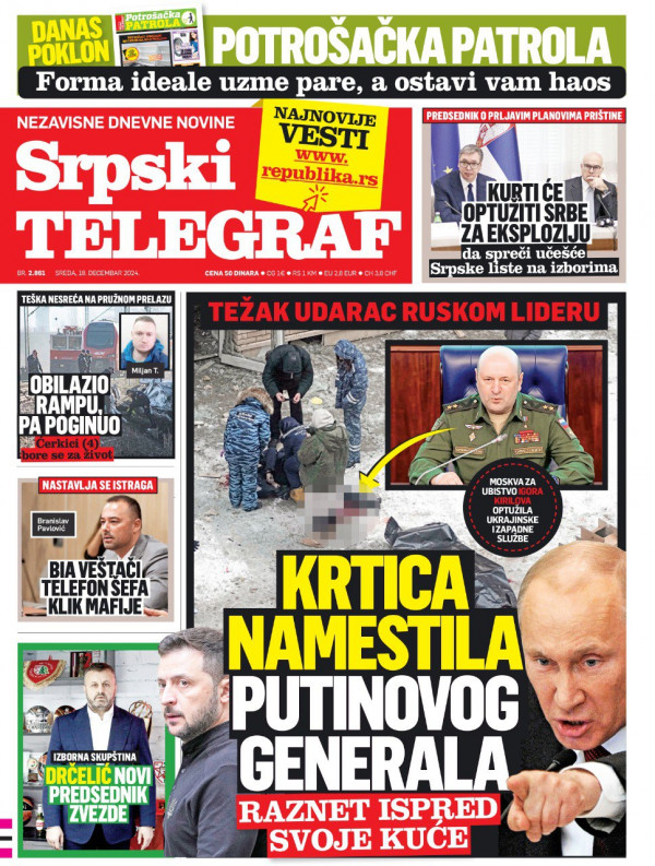 Naslovna strana Srpskog telegrafa za 18.12.2024.