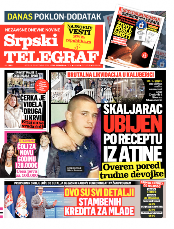 Naslovna strana Srpskog telegrafa za 22.12.2024.