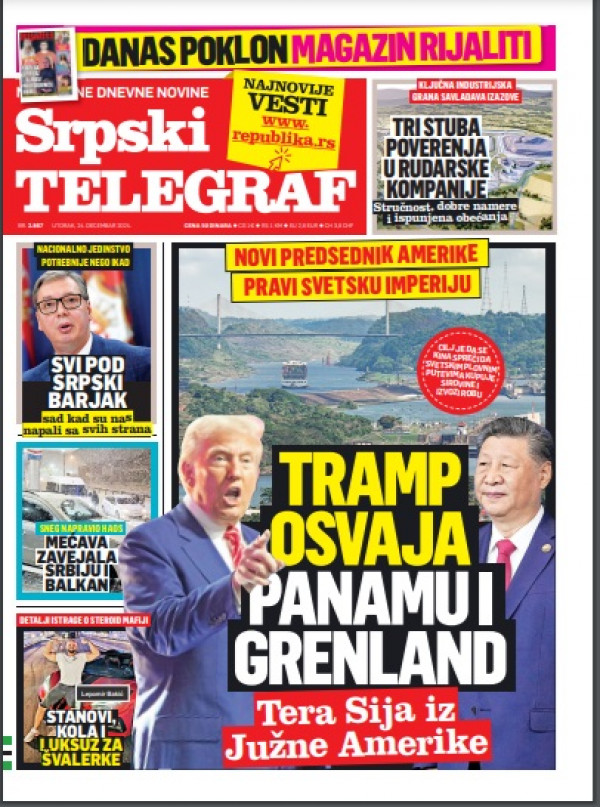 Naslovna strana Srpskog telegrafa za 24.12.2024.