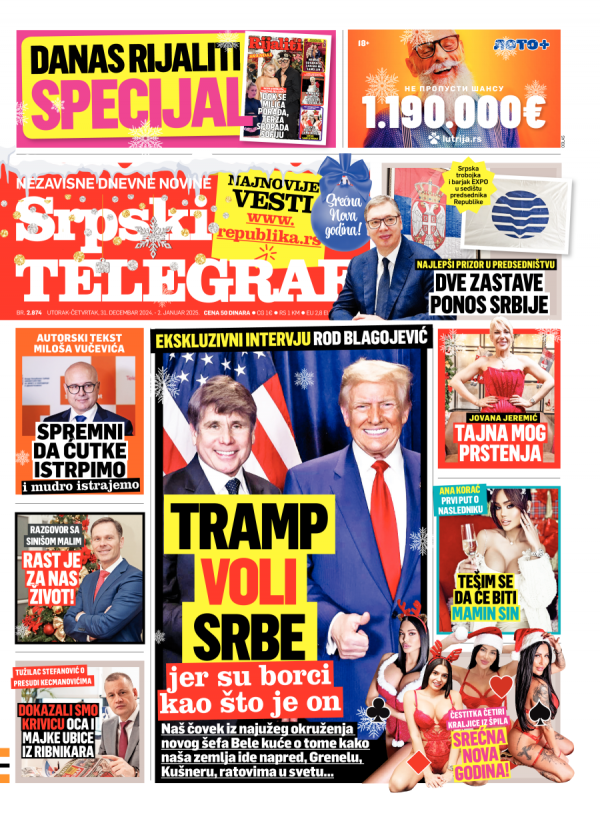Naslovna strana Srpskog telegrafa za 31.12.2024.