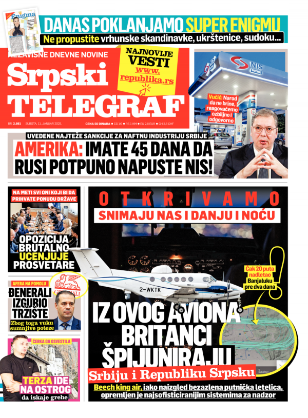 Naslovna strana Srpskog telegrafa za 11.01.2025.