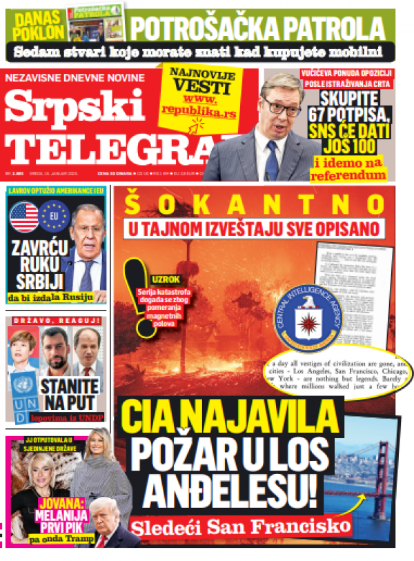 Naslovna strana Srpskog telegrafa za 15.01.2025.