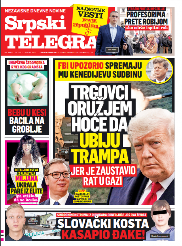 Naslovna strana Srpskog telegrafa za 17.01.2025.