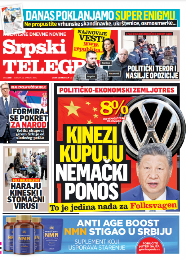 Naslovna strana Srpskog telegrafa za 18.01.2025.