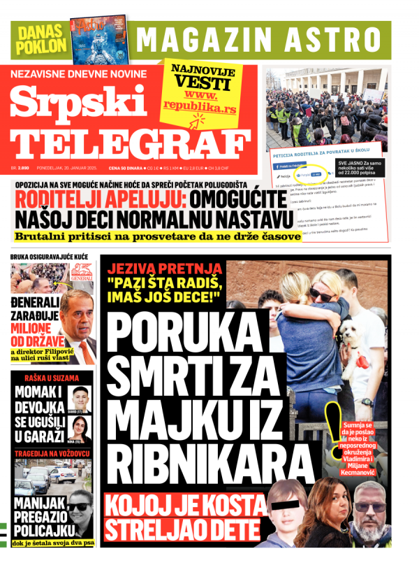 Naslovna strana Srpskog telegrafa za 20.01.2025.
