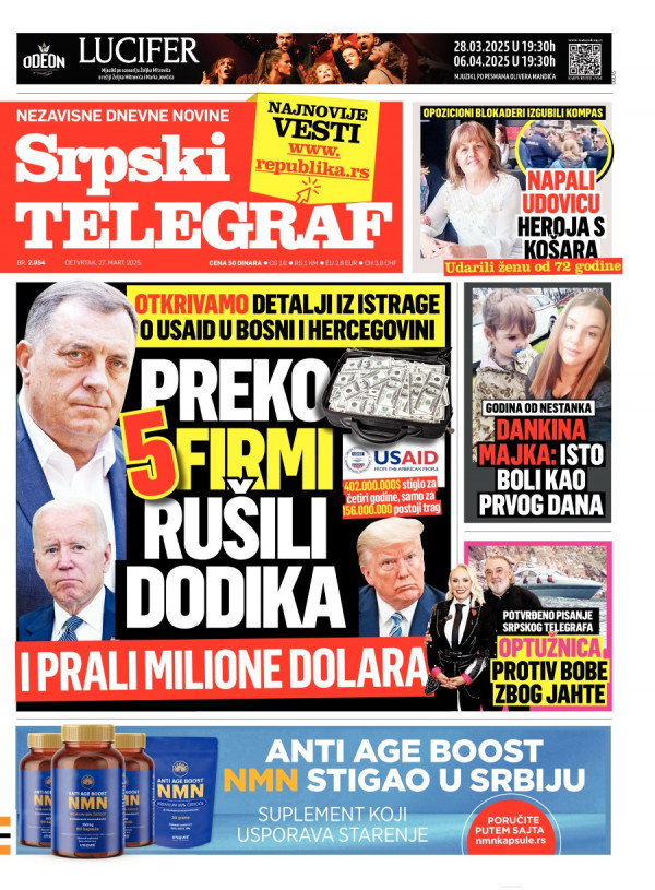 Naslovna strana Srpskog telegrafa za 27.03.2025.
