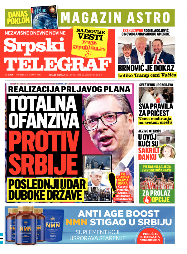 Naslovna strana Srpskog telegrafa za 31.03.2025.