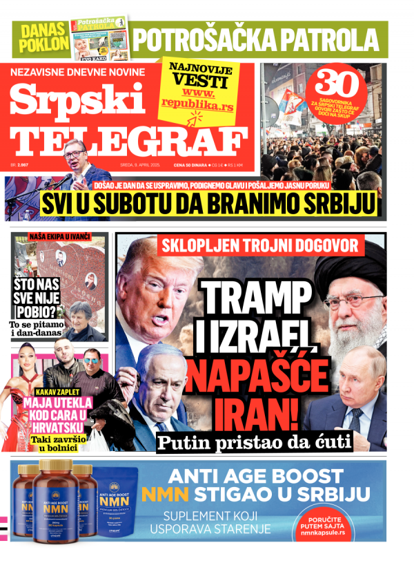 Naslovna strana Srpskog telegrafa za 09.04.2025.