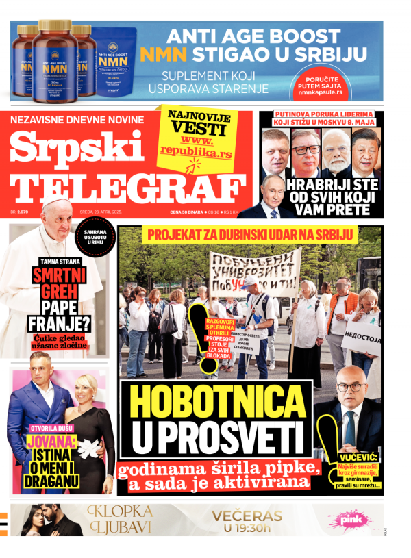 Naslovna strana Srpskog telegrafa za 23.04.2025.