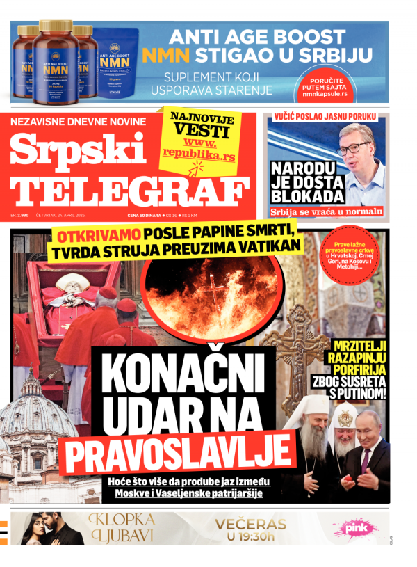 Naslovna strana Srpskog telegrafa za 24.04.2025.