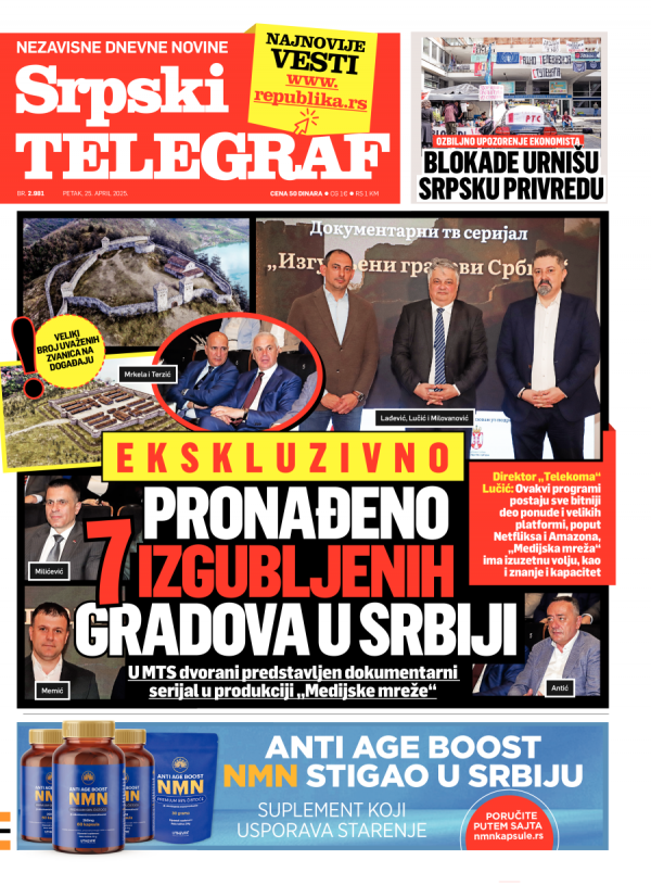 Naslovna strana Srpskog telegrafa za 25.04.2025.