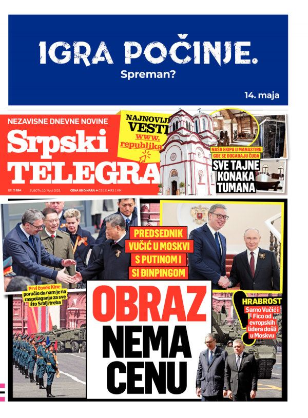 Naslovna strana Srpskog telegrafa za 10.05.2025.