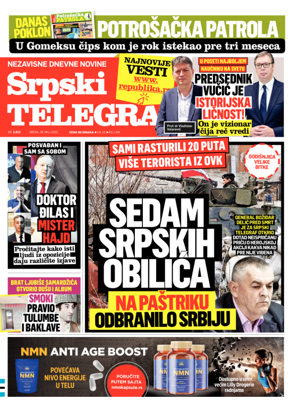 Naslovna strana Srpskog telegrafa za 28.05.2025.