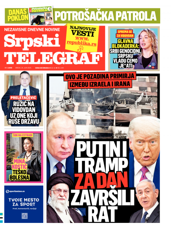 Naslovna strana Srpskog telegrafa za 25.06.2025.