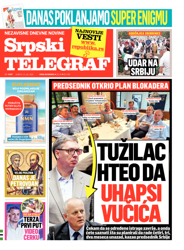 Naslovna strana Srpskog telegrafa za 12.07.2025.