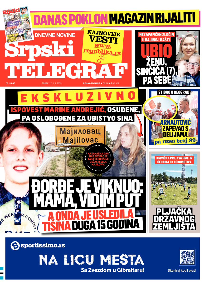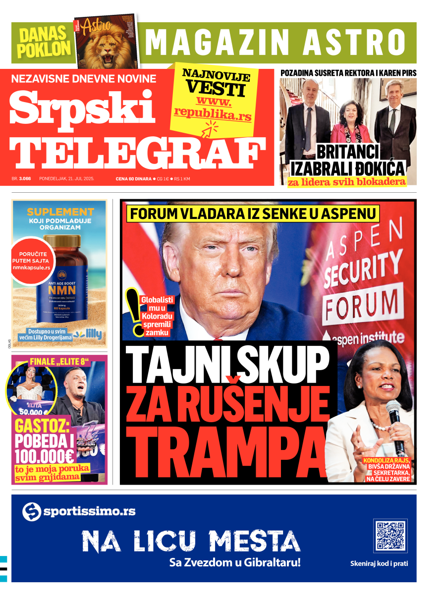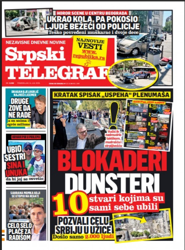 Naslovna strana Srpskog telegrafa za 14.07.2025.