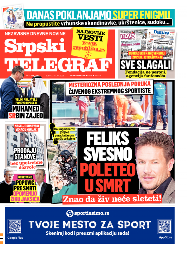 Naslovna strana Srpskog telegrafa za 19.07.2025.