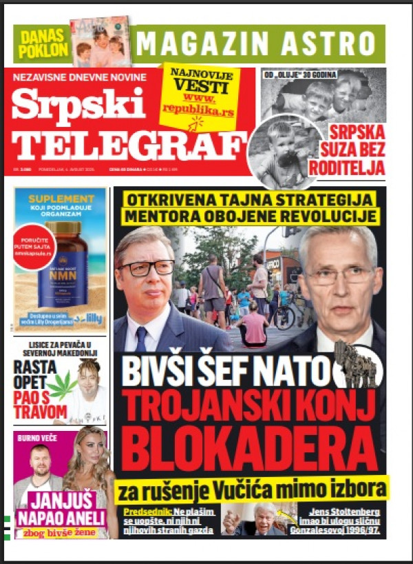 Naslovna strana Srpskog telegrafa za 04.08.2025.